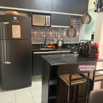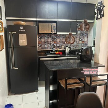 Condomínio possui: Churrasqueira, Salão de Festas, Brinquedoteca, Quadra.