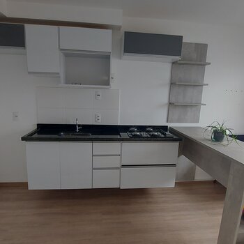 Apto possui: Cozinha c/ armários e cooktop / Dormitório c/ armários / Área de Serviço c/ armários